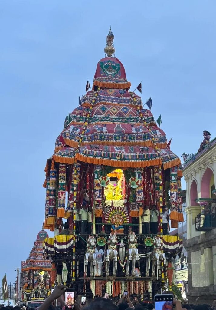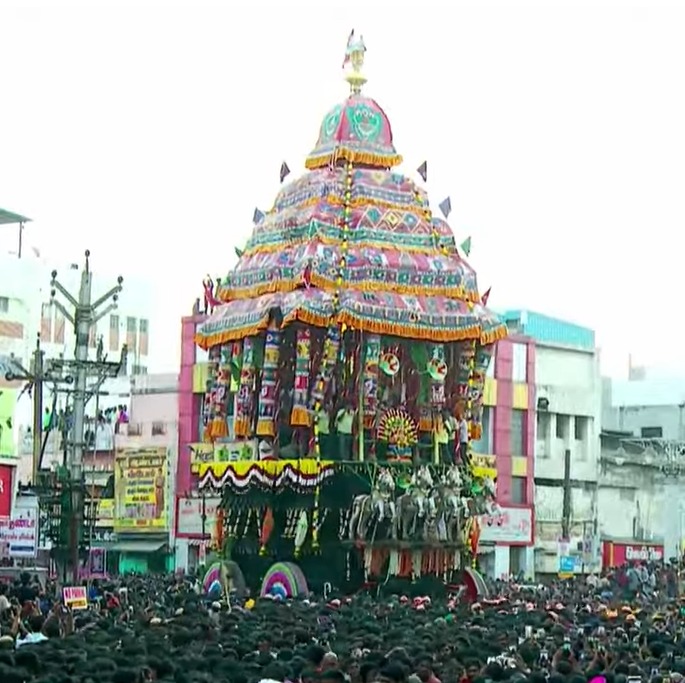 சித்திரைத் திருவிழாவின் பதினொன்றாம் நாளான இன்று (29.04.2026, புதன்) அதிகாலை 4.00 மணி முதல் 4.30 மணி வரை எழுந்தருளுதலுடன் தொடங்கிய திருத்தேரோட்டம் சிறப்பாக நடைபெற்றது; நான்கு மாசி வீதிகளில் திருத்தேர் வழியாக இறைவன் பக்தர்களுக்கு அருள்பாலித்தார். மேலூலக்கனத்தில் அதிகாலை 05.15 மணி முதல் 05.45 மணி வரை ரதாரோகணம் நடைபெற்று, காலை 06.30 மணிக்கு திருத்தேர் வாம்பிடுத்தல் நடைபெற்றது; பிரதோஷ வழிபாடுகளும் நடைபெற்றன. இந்நிகழ்வைத் தொடர்ந்து, இரவு 7.00 மணியளவில் சப்தாவரணச்சப்பர உலா நடைபெறவுள்ளது; நான்கு மாசி வீதிகளில் உலா வந்து, இரவு 10.30 மணியளவில் திருக்கோயிலுக்கு திரும்பும் என அறிவிக்கப்பட்டுள்ளது.