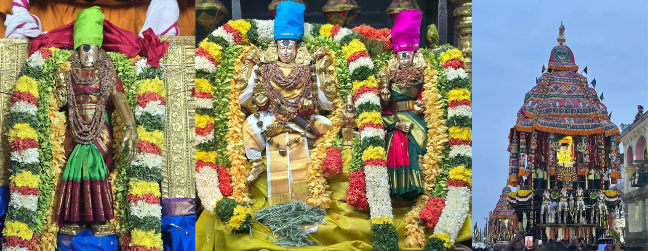 சித்திரைத் திருவிழாவின் பதினொன்றாம் நாளான இன்று (29.04.2026, புதன்) அதிகாலை 4.00 மணி முதல் 4.30 மணி வரை எழுந்தருளுதலுடன் தொடங்கிய திருத்தேரோட்டம் சிறப்பாக நடைபெற்றது; நான்கு மாசி வீதிகளில் திருத்தேர் வழியாக இறைவன் பக்தர்களுக்கு அருள்பாலித்தார். மேலூலக்கனத்தில் அதிகாலை 05.15 மணி முதல் 05.45 மணி வரை ரதாரோகணம் நடைபெற்று, காலை 06.30 மணிக்கு திருத்தேர் வாம்பிடுத்தல் நடைபெற்றது; பிரதோஷ வழிபாடுகளும் நடைபெற்றன. இந்நிகழ்வைத் தொடர்ந்து, இரவு 7.00 மணியளவில் சப்தாவரணச்சப்பர உலா நடைபெறவுள்ளது; நான்கு மாசி வீதிகளில் உலா வந்து, இரவு 10.30 மணியளவில் திருக்கோயிலுக்கு திரும்பும் என அறிவிக்கப்பட்டுள்ளது.