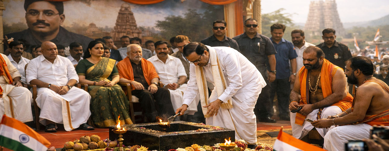 மதுரை வண்டியூர் அம்மா திடலில் நடைபெற்ற விழாவில், மதுரை கப்பலூர் தனியார் கல்லூரி வளாகத்தில் 140 அடி உயரத்தில் சுதந்திரப் போராட்ட வீரர் வ.உ.சிதம்பரனார் அவர்களுக்கு சிலை அமைக்கும் திட்டத்திற்கான அடிக்கல் நாட்டும் நிகழ்ச்சி நேற்று நடைபெற்றது. இதில் இந்திய குடியரசுத் துணைத் தலைவர் சி.பி. ராதாகிருஷ்ணன் அடிக்கல் நாட்டி, வ.உ.சி. அவர்களின் தியாகமும் தேசப்பற்றும் புதிய தலைமுறைக்கு எடுத்துக்காட்டாக நிலைக்க வேண்டுமென வலியுறுத்தினார்.