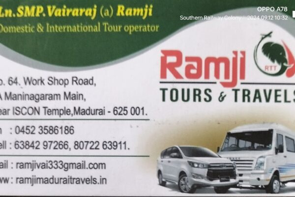 முகவரி: ராஜ் தேவர் கல்யாண மண்டபம், 64A, வொர்க் ஷாப் ரோடு, எதிரில், மணி நகர் மெயின் ரோடு, மதுரை, தமிழ்நாடு – 625001 தொலைபேசி: 063842…